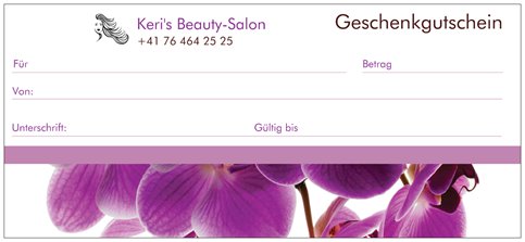 Schenken Sie jemanden einen Gutschein für unseren Keri's Beauty-Salon und machen Sie dieser Person so eine Freude